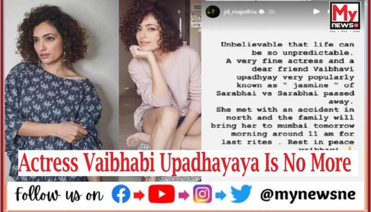 National Desk, 24 May: Actress Vaibhabi Upadhayaya who is best known for her role in the popular TV Show ‘Sarabhai vs Sarabhai’ passed away in a car accident on Wednesday.
