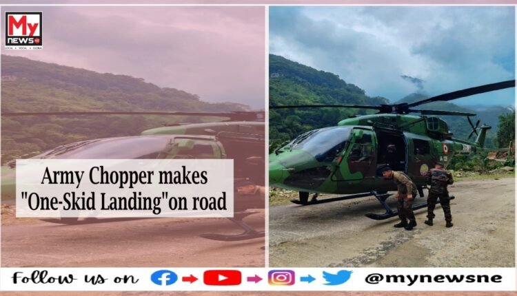 Army Chopper makes One-Skid Landing on road in Arunachal