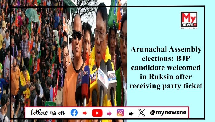 Northeast Desk, 17th March: Former Mariyang-Geku MLA Olom Panyang was warmly welcomed by his party members and well-wishers at the Ruksin entry gate of East Siang district today, following his nomination as the BJP MLA candidate for the upcoming Assembly election.