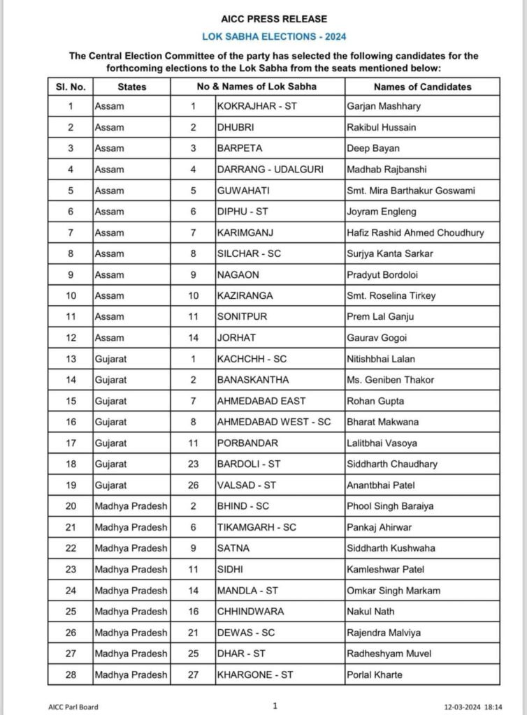 Congress has allocated only one seat for its alliance partner, the Assam Jatiya Parishad (AJP), namely Dibrugarh, where Lurinjyoti Gogoi will contest.