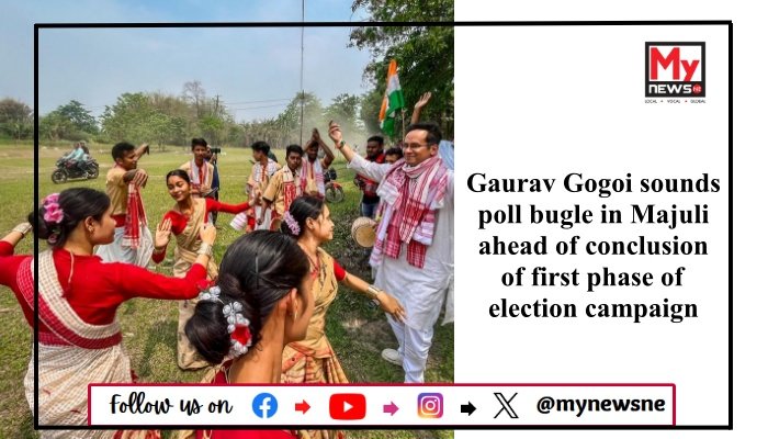 AGuwahati, 17th April: Amidst cheers and colorful festivities, Congress candidate Gaurav Gogoi made a captivating arrival at the Kamalabari ghat in Majuli, where he was greeted with fervent enthusiasm by his supporters. The atmosphere buzzed with excitement as Gogoi, accompanied by traditional Bihu dancers, immersed himself in the vibrant local culture.