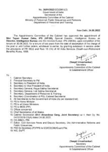 Meanwhile, the tenure of Samant Goel, who has been in charge of the Research and Analysis Wing (R&AW), has had his contract extended by one year, the ministry announced in a separate notification.
