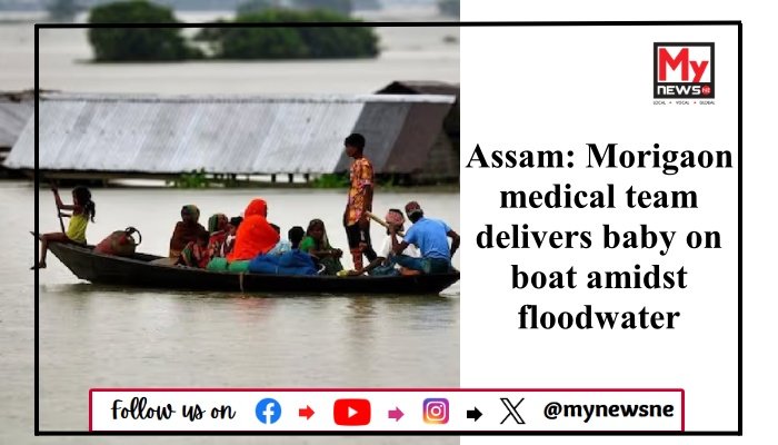 Northeast Desk, 5th July: In a daring rescue operation amidst flood-ravaged conditions in Morigaon, a medical team faced an urgent situation when 25-year-old Jahanara Khatoon unexpectedly went into labor while being evacuated from a flood-hit char (sandbar). Driven by the pressing need, healthcare professionals swiftly converted their boat into a makeshift delivery room, using a tarpaulin cover to shield Khatoon and themselves from the relentless rain.
