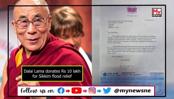 Northeast Desk, 13th October: The Tibetan spiritual leader, Dalai Lama, has made a generous donation of Rs 10 lakh to assist with the relief and rehabilitation efforts in Sikkim, which was recently hit by flash floods.