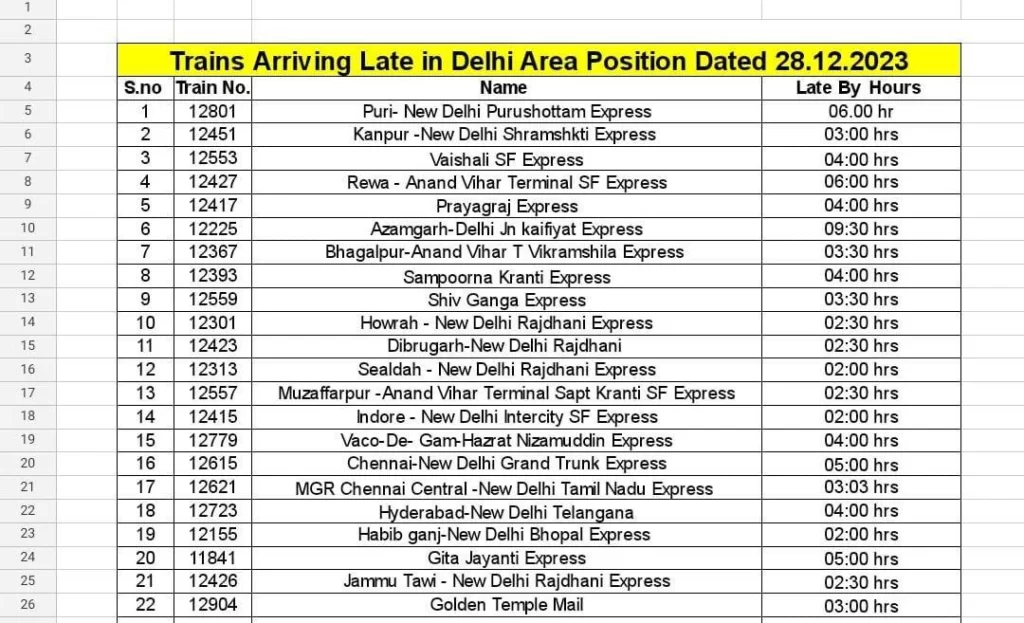 The disruption in the train schedule is part of a larger trend, with 25 trains, including the Rajdhani Express, experiencing delays exceeding five hours on December 26th and 27th. Travellers are advised to check the latest status and live running updates through the National Train Enquiry System (NTES) to stay informed about potential delays.