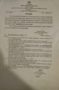 “This is for general information to all concerned that in view of rising water level and floating of wooden logs, debries as well as heavy current in the river Brahmaputra, operation of all departmental boats / vessels in the Guwahati based ferry services under I.W.T. Division Guwahati are hereby temporarily suspended with effect from 1″ July/2022 until further order,” read the order from the inland water transport division of the government of Assam.