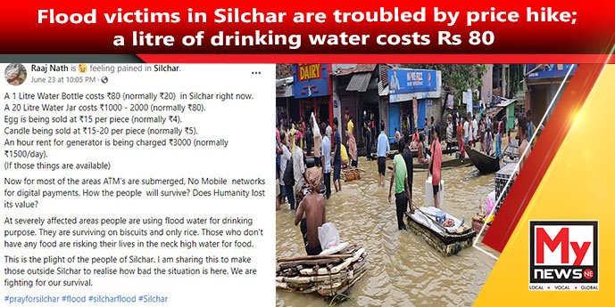 Flood victims in Silchar are troubled by price hike; a litre of drinking water costs Rs 80