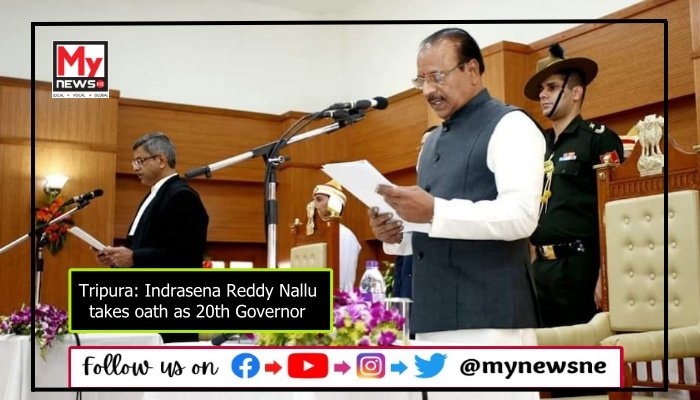 Northeast Desk, 26th October: Indrasena Reddy Nallu took the formal oath of office as the 20th Governor of Tripura in a ceremony held on Thursday. The Chief Justice of Tripura High Court, Apresh Kumar Singh, administered the oath to the newly appointed Governor, and the event transpired at the Durbar Hall of Raj Bhavan.