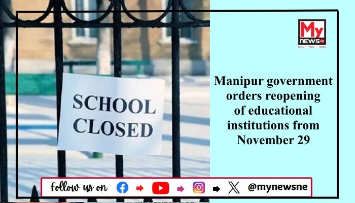 Imphal: In a sudden reversal of its earlier order, the Manipur government has decided to reopen all government educational institutions, government-aided colleges, and state universities from Friday, November 29, 2024.