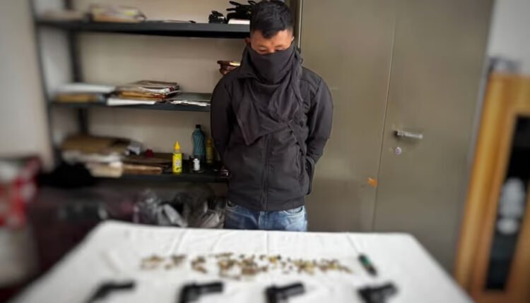 Imphal: Security agencies, including the Customs Division, arrested a Manipur resident and seized four pistols with ammunition from his possession in Shingicherra, Tripura’s Khowai district late Sunday evening. The accused was allegedly attempting to smuggle the firearms into Bangladesh.