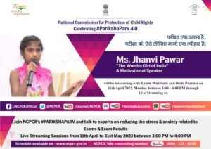 New Delhi: The National Commission for Protection of Child Rights (NCPCR) will celebrate Pariksha Parv- 4.0 from April 11to 31st May, 2022.