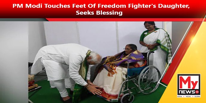 PM Modi Touches Feet Of Freedom Fighter’s Daughter, Seeks Blessing