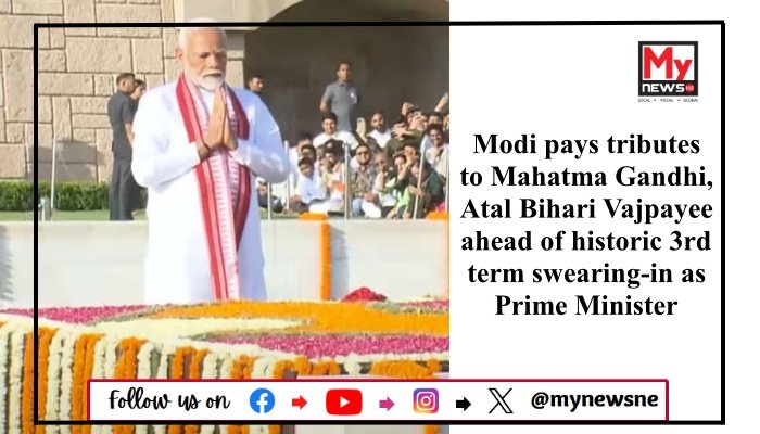 National Desk, 9th June: Prime Minister Narendra Modi began his Sunday by paying tributes to former PM Atal Bihari Vajpayee and Mahatma Gandhi, and visiting the National War Memorial, ahead of being sworn in for an unprecedented third consecutive term as India’s leader.