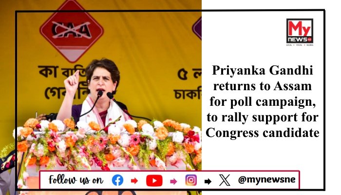 Northeast Desk, 1st May: Congress leader Priyanka Gandhi Vadra is set to make her presence felt in Assam once again as she returns for election campaigning, injecting new energy into the upcoming electoral battle.