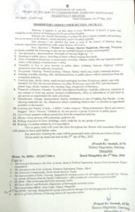 Guwahati: The Darrang district magistrate-imposed Section 144 of the Code of Criminal Procedure (CrPC) in the area on Wednesday to prevent a violation of peace and quiet.