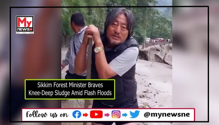 Northeast Desk, 7th October: Karma Loday Bhutia, the Forest Minister of Sikkim, demonstrated hands-on leadership by wading through knee-deep sludge on the Naga-Chungthang road in North Sikkim. This proactive approach by the minister comes at a crucial time when the region is grappling with the aftermath of flash floods and growing concerns about the rumored Shako Cho Lake burst.