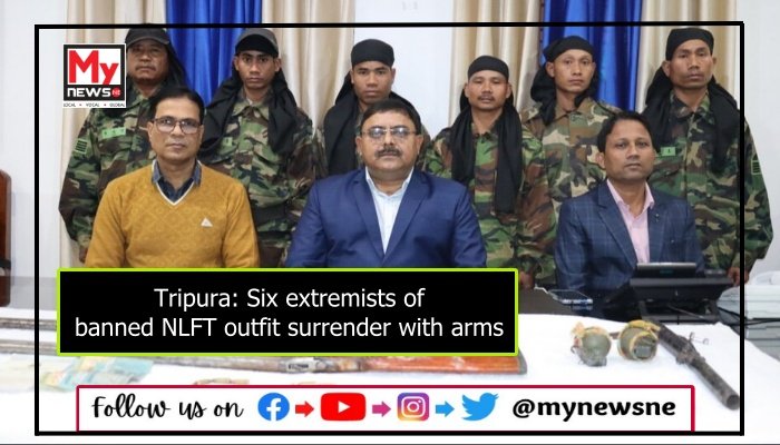 Northeast Desk, 9th February: Six members of the banned outfit National Liberation Front of Tripura (NLFT) (PD group) surrendered before Tripura Police on Friday, marking a significant development in the state’s security landscape.