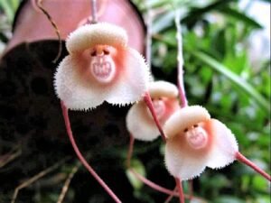 4- Monkey Orchids (Dracula Simia): They are known as Monkey Orchids because the arrangement of the flower petals resembles a monkey’s face. The plant can bloom at any season and they have the fragrance of ripe oranges.