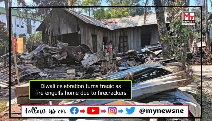 Northeast Desk, 13th November: In a heartbreaking incident in Agartala’s Masterpara area, the Diwali festivities turned into a nightmare for Bishal Deb and his family as their residence was reduced to ashes last night. The fire, believed to have been sparked by a firecracker, quickly consumed the house, leaving behind charred remnants.