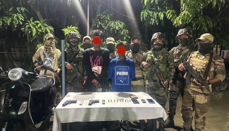 During the operation, authorities seized two pistols with magazines, nine rounds of live ammunition, three mobile phones, Rs 6,000 in cash, and a two-wheeler. Later the same day, a subsequent search in S. Nabil Village, Churachandpur district, led to the recovery of 67 improvised mortar shells, 25 fuse primers, and nine other items.